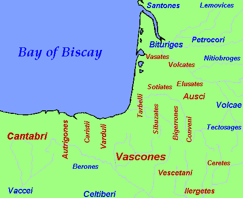 - Legend: Map of Basque and surrounding tribes in early Roman times
