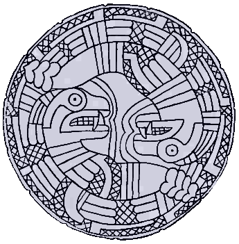 NOTCHED PLATE OF STONE FROM MISSISSIPPI, WITH ARTISTIC ENGRAVING OF FEATHERED RATTLESNAKES. |