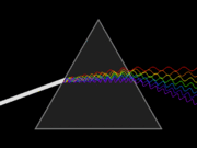 This is a conceptual animation of the dispersion of light as it travels through a triangular prism.