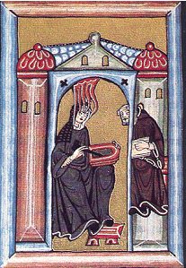 Hildegard von Bingen empfängt eine göttliche Inspiration. en:Image:Hildegard.jpg |