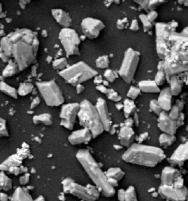 Scanning electron microscopy image of as received LiAlH4 powder, Created by Andr
