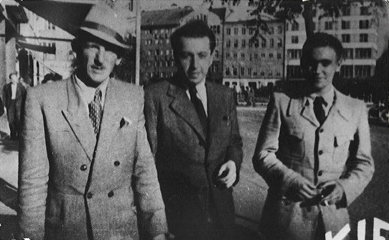 English: Source: Robin Vrba by e-mail attachment: "I hereby release these images under a free license so that they may be used by Wikepedia and anyone else for commercial and non-commercial use, with no restrictions." Description: en:Rudolf Vrba on the right, Josef Weiss in the middle, and Arnost Rosin on the left, Bratislava, June-July 1944. Rudolf Vrba and Arnost Rosin had both recently escaped from Auschwitz; Vrba on April 7, 1944 and Rosin on May 24, 1944.
