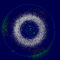 This image is based on data found in the en:JPL DE-405 ephemeris, and the en:Minor Planet Centre database of asteroids (etc) published 2006 Jul 6. The image is looking down on the en:ecliptic plane as would have been seen on 2006 August 14. It was rendered by custom software written for Wikipedia. The same image without labels is also available. |