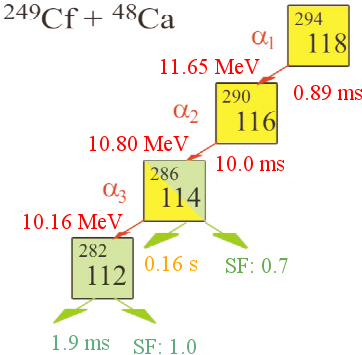 English: The image contains the synthetic method and the decomposition pathway of Uuo-294 Format