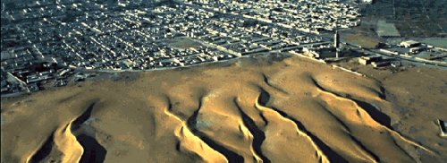 Landsat image of sand dunes advancing on Nouakchott, the capital of Mauritania. |