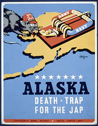 | current | 09:22, 27 February 2008 | 1,166×1,496 (1.68 MB) | Durova | (== Summary == {{Information |Description=Alaska - death-trap for the Jap / Grigware. Poster for Thirteenth Naval District, United States Navy, showing a rat representing Japan, approaching a mousetrap labeled "Army Navy Civilian," on a background map of ) |