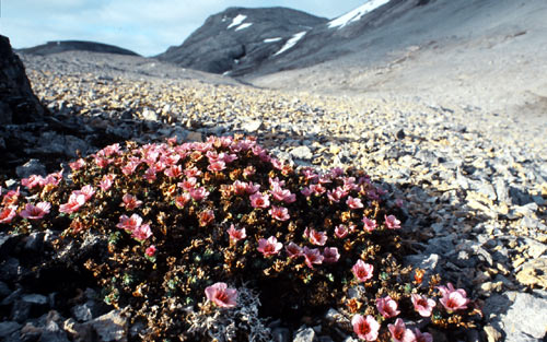 - 2005-06-10 09:02 Mikesegeln 500×313×8 (66093 bytes) Purple Saxifrage, Saxifraga oppositifolia, at northern part of Ymerdalen, southern Bjoernoeya, July 2002, ba Michael Haferkamp