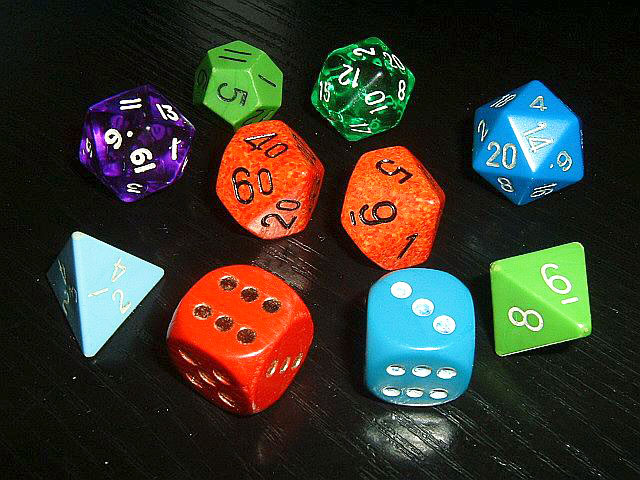 Dice for various games, especially for roleplaying games. -- Peng 12:24, 25 Apr 2005 (UTC)