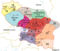 Legend: yellow lines: current borders blue lines: rivers red dots: main castles/settlements 1: from 833 to 907: Principality of Moravia 2: from 833 to 907: Principality of Nitra 3: along with 2 or along with 4 4: from 833 or from the reign of Rastislav to (?)896: Principality of Nitra 5: along with 1 or from 853/54 to (?)907: Princiaplity of Moravia 6: from 858 to (?)894: Principality of Nitra 7: along with 2 or along with 22 8: along with 6 or along with 20 9: from the reign of Rastislav (846-870) or of Svätopluk I (871-894) to 896: Principality of Nitra 10: along with 8 or along with 20 11: from 874 to (?) 907: Wislania 12: probably along with 11 13: from 880 to ?: Silesia (Silesia was not annexed according to some authors) 14: probably along with 14 15: from 890 to 897: Lusatia 16: with a high probability along with 15 17: with a high probability along with 15 18: probably along with 15-17 19: from 888/890 to 894: Bohemia 20: from 883/884 to 894: Pannonian Principality (Balaton Principality) 21: with a high probability along with 20 22: along with 20 (and 21): maybe part of the Pannonian Principality (Balaton Principality) 23: from 881/882 to 896: "Transtheissia" 24: probably along with 23 25: from the reign of Svätopluk (871-894) to (?) 896 26: from the reign of Svätopluk (871-894) to ? 27: along with 23 or along with 24
