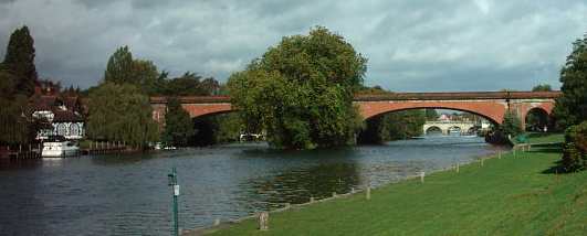 Looking north, Maidenhead Railway Bridge ( Isambard Kingdom Brunel, 1838) crossing the River Thames at Maidenhead. Maidenhead Road Bridge (1777) can be seen in the distance.