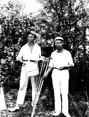 English: Founder of Suomi-Filmi and Suomen Filmiteollisuus Erkki Karu (1887-1935) (left) with Eino Kari in 1927