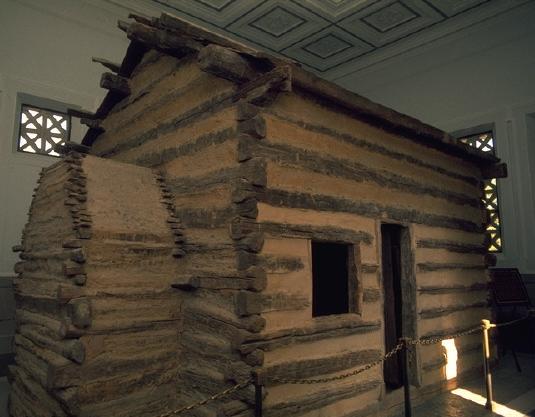 - 2006-03-29 14:38 Eoghanacht 535×417×8 (33466 bytes) Interior of the memorial building showing the symbolic log cabin at [[Abraham Lincoln Birthplace National Historic Site]], located at 2995 Lincoln Farm Road, [[Hodgenville, Kentucky]]. (approx lat/long: {{coor dms|37|31|52|N|85|44|15|W|}}). Source: the
