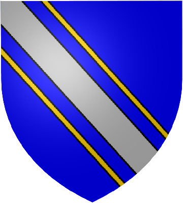 | d'azur, à une bande d'argent, cotoyée de deux cotices d'or. |
