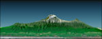 Mount Kilimanjaro (Kilima Njaro or "mountain of god" in en:chagga), the highest point in Africa, reaches 5,895 meters (19,340 feet) above sea level, tall enough to maintain a permanent snow cap despite being just 330 kilometers (210 miles) south of the equator. It is the tallest free-standing mountain on the Earth's land surface, rising about 4,600 meters (15,000 feet) above the surrounding plain. Kilimanjaro is a triple volcano (has three peaks) that last erupted perhaps more than 100,000 years ago but still exudes volcanic gases. It is accompanied by about 20 other nearby volcanoes, some of which are seen to the west (left) in this view, prominently including Mount Meru, which last erupted only about a century ago. The volcanic mountain slopes are commonly fertile and support thick forests, while the much drier grasslands of the plains are home to elephants, lions, and other savanna wildlife. This 3-D perspective view was generated using topographic data from the Shuttle Radar Topography Mission (SRTM), a Landsat 7 satellite image, and a false sky. Topographic expression is vertically exaggerated two times. Landsat has been providing visible and infrared views of the Earth since 1972. SRTM elevation data matches the 30-meter (98-foot) resolution of most Landsat images and will substantially help in analyzing the large and growing Landsat image archive, managed by the U.S. Geological Survey (USGS). Image Credit: NASA/JPL/NIMA Larger TIFF available approx 3mb http://photojournal.jpl.nasa.gov/catalog/PIA03355 |