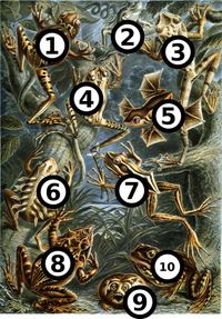 The 68th plate from Ernst Haeckel's 1904 Kunstformen der Natur, depicting frogs classified as Batrachia.