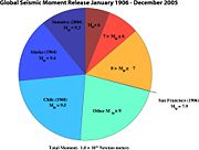 Of all the seismic moment released by earthquakes in the 100 years from 1906 through 2005, roughly one-eighth was due to the Sumatra-Andaman event. This quake, together with the Good Friday Earthquake ( Alaska, 1964) and the Great Chilean Earthquake (1960), account for almost half of the total moment. The much smaller but still catastrophic 1906 San Francisco earthquake is included in the diagram at right for perspective. Mw denotes the magnitude of an earthquake on the moment magnitude scale.