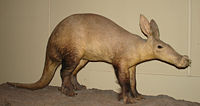 The Aardvark (Orycteropus afer) ("Digging foot") is a medium-sized, burrowing, nocturnal mammal native to Africa. It is sometimes called "antbear", "anteater", "Cape anteater" (after the Cape of Good Hope), "earth hog" or "earth pig". The name comes from the Afrikaans/Dutch for "earth pig" (aarde earth, varken pig), because early settlers from Europe thought it resembled a domesticated pig. However, the aardvark is not closely related to the pig; rather, it is the sole recent representative of the obscure mammalian order Tubulidentata, in which it is usually considered to form a single variable species of the genus Orycteropus, coextensive with the family Orycteropodidae. Nor is the aardvark closely related to the South American anteater, despite sharing some characteristics and a superficial resemblance. The closest living relatives of the aardvark are the elephant shrews, along with the sirenians, hyraxes, tenrecs and elephants.