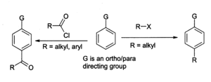 The Friedel-Crafts reaction is the major use for aluminium chloride, for example in the preparation of anthraquinone (for the dyestuffs industry) from benzene and phosgene. In the general Friedel-Crafts reaction, an acyl chloride or alkyl halide reacts with an aromatic system as shown: