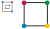 All of them keep the shape of the square unchanged. (In the images, the vertices are colored only for making clear the operations).