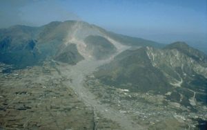 ![]() Mt. Unzen, showing extensive pyroclastic flow and lahar deposits |