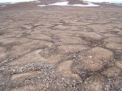 The polygonal cracking in this area had previously been observed from orbit, and is similar to patterns seen in permafrost areas in polar and high altitude regions of Earth. A likely formation mechanism is that permafrost ice contracts when the temperature decreases, creating a polygonal pattern of cracks, which are then filled by loose soil falling in from above. When the temperature increases and the ice expands back to its former volume, it thus cannot assume its former shape, but is forced to buckle upwards. (On Earth, liquid water would probably enter at times along with soil, creating additional disruption due to ice wedging when the contents of the cracks freeze.)