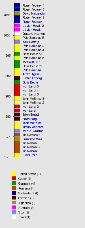 - Ivan Lendl (2), Czechoslovakia, 1981-1982; 1985-1987