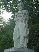 Dio Cassius, a second-century Roman historian, described Tiridates favorably at the time of his arrival: "Tiridates himself was in the prime of his life, a notable figure by reason of his youth, beauty, family, and intelligence." Nero greeted Tiridates at Neapolis ( Naples) in October, sending a state chariot to carry the visitor over the last few miles. No one was allowed to approach the emperor armed, but Tiridates maintained his dignity by refusing to remove his sword as he approached the ruler of the Roman Empire (though as a compromise, he agreed to have his sword firmly fastened in the sheath, so that it could not be drawn). At Puteolis (modern Pozzuoli, near Naples) Nero ordered athletic games to be staged in honour of his guest. The Armenian king himself had an opportunity to display his ability as a marksman by shooting an arrow through the bodies of two buffaloes. The event at Puteolis also marked the first attested appearance of female gladiators: