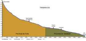 The Trabancos is a river in Spain which flows between the Zapardiel and the Guareña rivers and is a tributary of the Duero river. The source of the Trabancos is in Moraña, a region in the north of the province of Ávila, near Blascomillán. The Trabancos is at an elevation of approximately 1,100 meters, is approximately 85 kilometers long and, although its river bed is stable, only has a constant water flow during torrential rains.