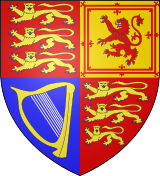 Victoria's coat of arms were: Quarterly, I and IV Gules three lions passant guardant in pale Or (for England); II Or a lion rampant within a double tressure flory-counter-flory Gules (for Scotland); III Azure a harp Or stringed Argent (for Ireland). This same coat of arms has been used by every subsequent British monarch.