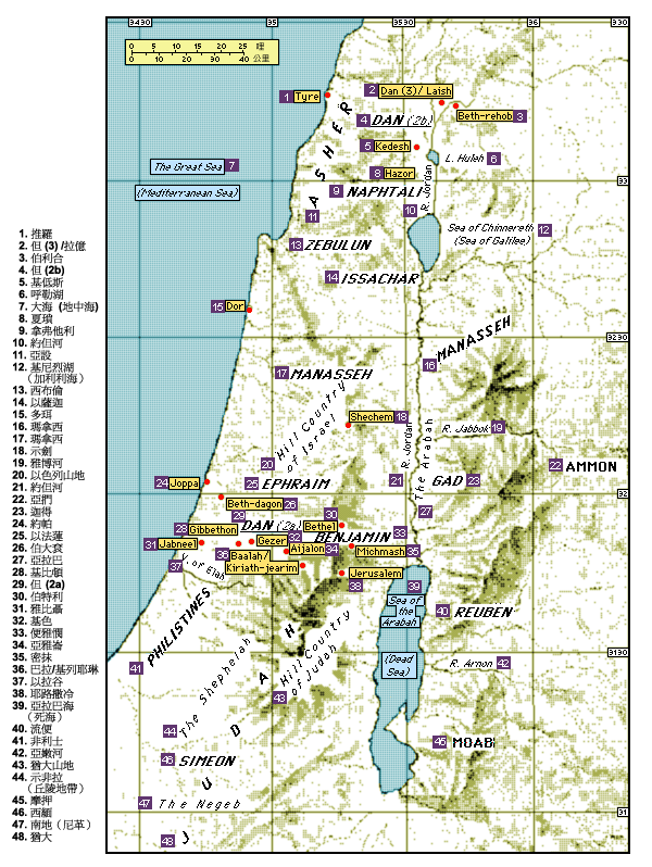 图 但支派聚居的两处地方及但城