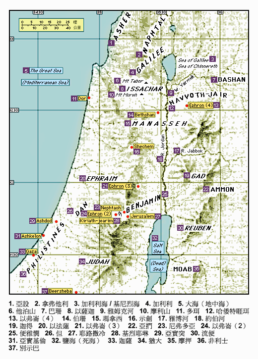 称为以弗仑的三个地点,分别位于犹大边境、伯特利附近和伯珊附近。