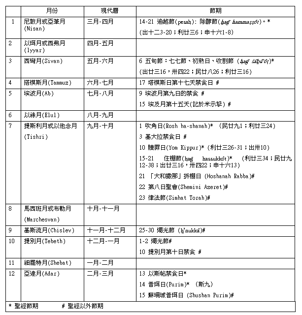 表 圣经内和圣经以外的主要犹太节期