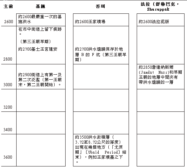 表 考古学显出在主前第四及第三千年期,发生在米所波大米城巿的几次主要洪水