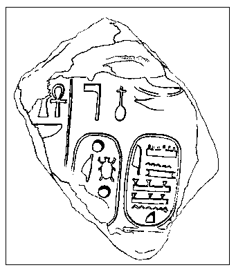 下图是一块在米吉多发现的凯旋铭刻碎片,上面刻有用埃及象形文字书写的法老示撒的名字。主前约
