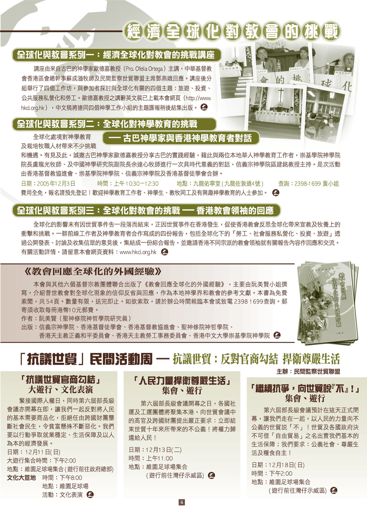 - 全球化與教會系列一: 經濟全球化對教會的挑戰講座
