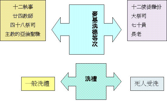 他們制定了亞倫及麥基洗德聖職,從而發展出十二使徒職份大祭司及七十員,長老等麥基洗德聖職,又發展出十二執事、廿四教師、四十八祭司及主教的亞倫聖職。