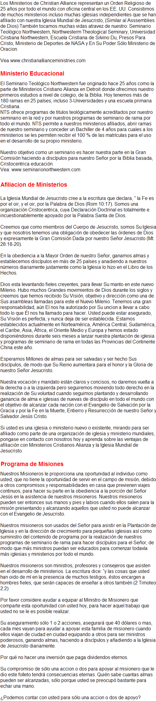 | Ministerios Mundiales Cristianos Alianza | |||||||||||||||||