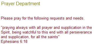 | Pray for the Board of CAM / NTS, Dr. Sarkela, Dr. Galloza, Dr. Larry Stutzman, Dr. Contreras, and Dr. Molina. That God may provide direction. | ||||||||||||||||||||||||||||||||||||||||||||