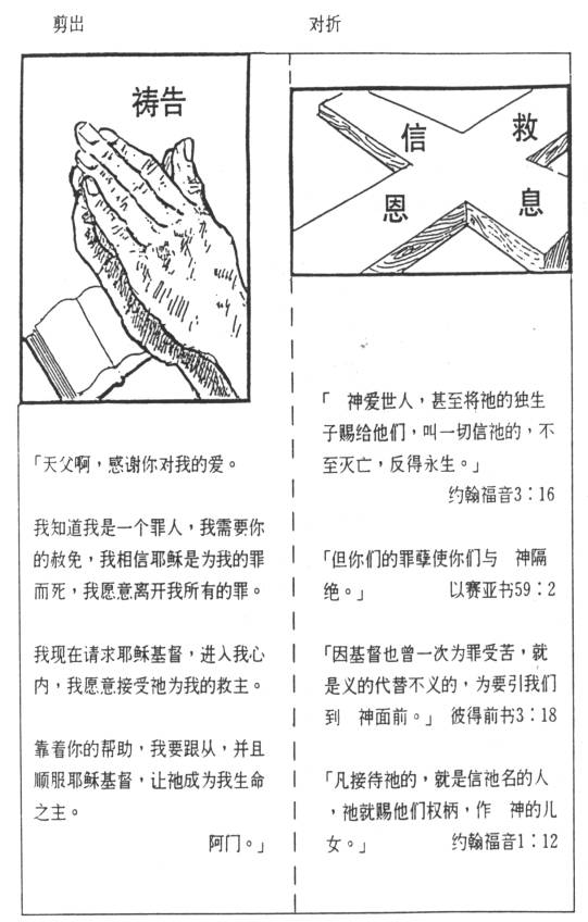 细看跟着的一页,你可以利用它做成一本小册子,有了这小册在手,你便可以向别人传扬这赦罪的信息。