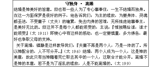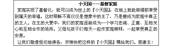 【新生活】(34)家庭生活 『你们作儿女的,要在主里听从父母,这是理所当然的。要孝敬父母,使你得福,在世长寿。这是第一条带应许的戒命。你们作父亲的,不要惹儿女的气,只要照着主的教训和警戒养育他们。』 弗6:1-4 |
