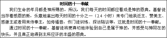 【新生活】(38)管家生活 『万军之耶和华说:你们要将当纳的十分之一全然送入仓库,使我家有粮,以此试试我是否为你们敞开天上的窗户,倾福与你们,甚至无处可容。』 玛3:10 |