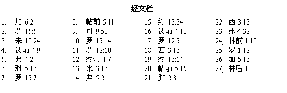 【新生活】(46)爱神爱人 『我赐给你们一条新命令,乃是叫你们彼此相爱;我怎样爱你们,你们也要这样相爱。你们若有彼此相爱的心,众人因此就认出你们是我的门徒了。』 约13:34,35 |