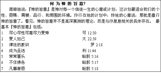 【新生活】(39)明白神的旨意 『不要效法这个世界,只要心意更新而变化,叫你们察验何为神的善良、纯全、可喜悦的旨意。』罗12:2 |