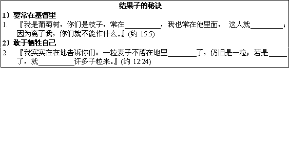 3 背诵经文:(21)基督徒的新生活 约15:5 |
