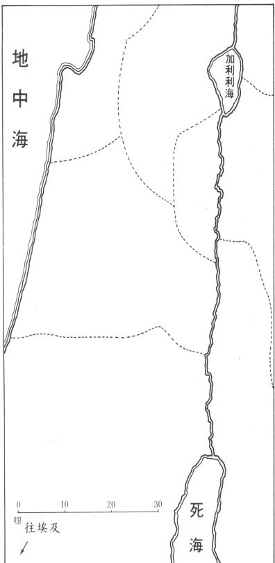 1 参考其他有关资料,在第十六页的第一世纪的巴勒斯坦图中,找出其中的主要城市,加上标记,并写出城市与城市之间的大约距离。