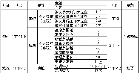 1. 主题的宣告: 2. (2) 娱乐虚空 3. (4) 死亡必临 4. 主题的阐释: 5. (2) 富裕之祸害 |