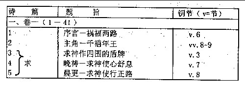 2 有关此题之研究必参Companion Bible, Bagster, 1969年再版。编者(E.W.Bullinger)不但对诗类文学极有研究,他以同样的方法把全部圣经每卷细析,为一本不可不读之精心 巨著。注