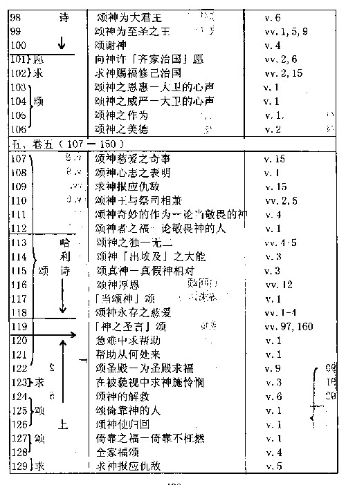 注1 读者可参必读之名作:桑安柱著「诗篇宝库」,甘霖出版社1970年版第83-88页。英文方面可参必读精研诗篇之巨作:Leupold Sabourin, The Psalms, Their Origin And Meaning,NY: Alba House,1974, 450pp.; E.W.Bullinger