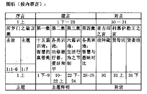 Wisdom)来。书内多以人生的教益为主题,特别论到人世上存活的问题,也论到人与人相处之问题,藉着这些彰显神的智慧,因他是一切智慧的源头(参箴1:7;