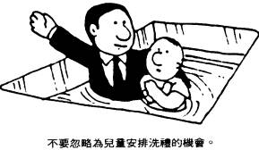 再者,鼓励儿童参与(观礼,或加上献诗的节目)青年人和成年人的洗礼崇拜,也是帮助儿童在灵命与属灵事工上之一项合宜和必要的学习。